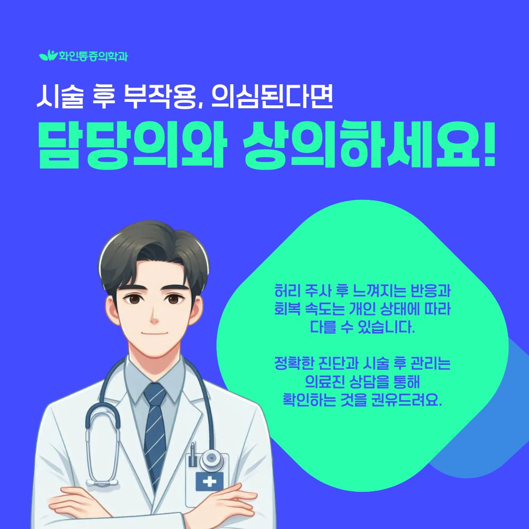 | 통증의학과 허리 주사 후 생길 수 있는 통증 반응과 부작용, 관리법 |