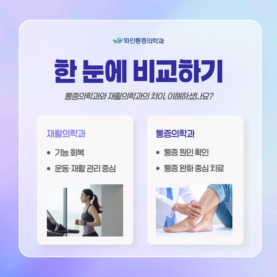 | 비슷해 보이지만 다른 두 진료과, 통증의학과와 재활의학과 차이점 뭐가 다를까요? |